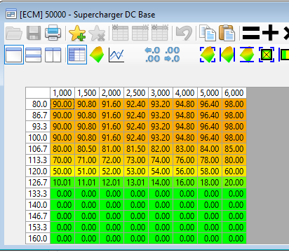 Using Io Terminal and Ghidra, I have been able to rewrite a section of the SC bypass control code to utilize the Turbo Base DC Table. I did this by commandeering the source that pointed at the SC Knock Airmass table and restructured it to point at the Turbo Base DC Table.