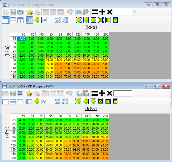 Each Driver Demand mode has its own Base DC table. This allows the driver to choose which boost profile they desire depending on what conditions the vehicle is in.